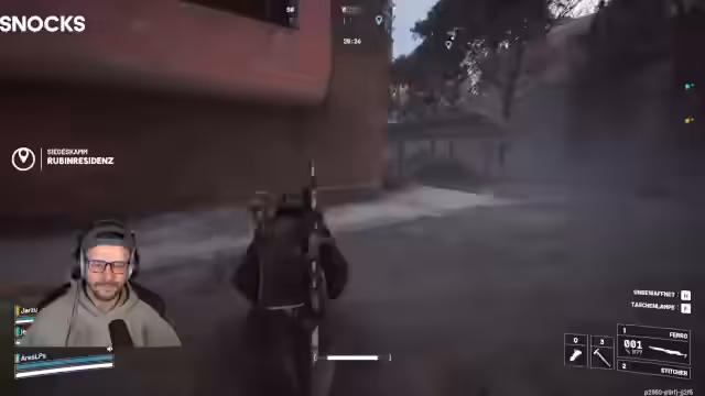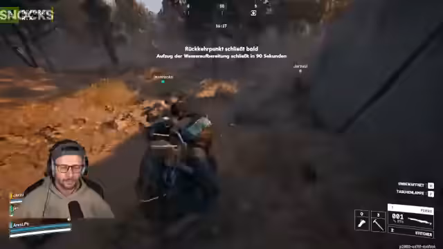 05:33:32Ares kommt mit einem Raketenwerfer ins Spiel, was die Arbeitsteilung im Team verdeutlicht: Jesse lenkt ab, Ares tötet und Jasul sammelt Loot. Die Gruppe hat die Quest, die Aussichtsplattform zu stabilisieren, ebenfalls offen. Es wird diskutiert, dass man die meisten XP durch das Plündern von Containern erhält, selbst mit einem Gratis-Loadout. Die Spieler beschließen, die Quest abzuschließen, auch wenn sie dabei sterben sollten, da die Erfüllung der Quest trotzdem zählt. Es wird überlegt, ob man sich mit anderen Spielern anlegen oder die Quest in den Vordergrund stellen soll.