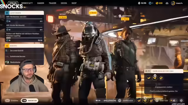 02:54:07Der Streamer plant, Quests wie das Plündern der Baronenhülle im Raumhafen, Damm oder Blauen Tor fortzusetzen. Er erklärt, dass Quests auf der linken Seite des Bildschirms unter 'Leistung' und 'Hauptstory-Quests' zu finden sind. Das Spiel ist auch für Spieler mit wenig Zeit geeignet, da man schnell looten und innerhalb von fünf Minuten extrahieren kann. Die Schwierigkeit der Maps variiert, wobei Events wie Stürme oder Nacht zusätzliche Herausforderungen bieten und den Beutewert erhöhen. Spieler können die Schwierigkeit anhand der angezeigten Zahlen und der Anzahl der aktiven Rückkehrpunkte und Raider-Luken erkennen. Der Solo-Modus ermöglicht es, mit anderen Solo-Spielern zusammenzukommen, während Duos oder Trios den Vorteil haben, sich gegenseitig wiederbeleben und heilen zu können. Der Streamer demonstriert detailliert verschiedene Spielmechaniken, darunter die Bedeutung von Geräuschen beim Bewegen, Looten und Waffenwechseln, die Nutzung der Hocke für präzisere Schüsse und das taktische Peek-Verhalten an Ecken. Er erklärt auch die Funktion von Arc-Energiezellen als Schildauflader und die strategische Nutzung von Granaten und Heilgegenständen im Kampf.