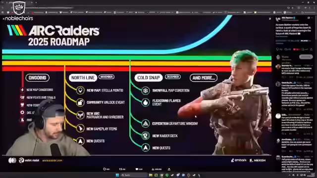 01:05:28Die Arc Raiders Roadmap wurde vorgestellt und umfasst eine Reihe von Updates für die kommenden Monate. Aktuell sind neue Kartenbedingungen, neue Herausforderungen und Prüfungen, neue kosmetische Gegenstände und Qualitätsverbesserungen geplant. Im November wird die neue Karte Stellar Montes eingeführt, begleitet von Community-Unlock-Events, neuen Arc-Matriarchen und Shreddern, neuen Gameplay-Items und Quests. Der Dezember bringt das Cold Snap-Update mit einer Schneefall-Kartenbedingung, Flickering Flames-Events, einem Expeditions-Abflugfenster, einem neuen Raider Deck und weiteren Quests. Diese kontinuierliche Entwicklung zeigt das Engagement, das Spiel mit frischen Inhalten zu versorgen und die Spielerfahrung stetig zu erweitern.