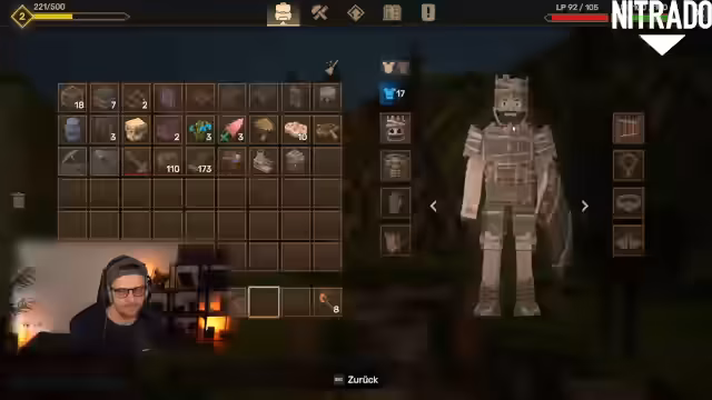05:13:45Der Streamer erkundet einen Dungeon, in dem er neue Blaupausen wie das Langschword und Panzerung findet. Er stellt fest, dass das Schwert kaputt ist und durch ein neues ersetzt werden muss. Gleichzeitig muss er auf seine Lebenspunkte achten, die sich durch Kämpfe reduzieren. Er brät Fleisch und Eier, um seine Lebenspunkte zu regenerieren, und stellt fest, dass die Nahrung nicht verderbt, was einen Vorteil für längere Expeditionen darstellt.