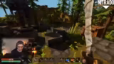 05:06:08Während der Erkundung stößt der Streamer auf Feinde wie Bogenschützen und Eber. Er stellt fest, dass sein einfaches Schwert nur geringen Schaden verursacht und schnell abnutzt. Um sich zu schützen, beginnt er, Rüstung herzustellen, die anfangs nur minimalen Schutz bietet. Nach einem verlorenen Kampf und dem Verlust seines Schwertes beschließt er, sich auf die Herstellung von besseren Ausrüstungsgegenständen zu konzentrieren, wie einem besseren Langschword, das er in einem Dungeon findet.