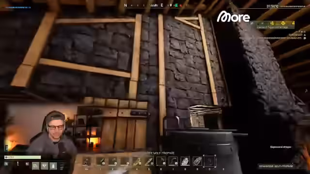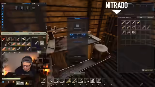 01:22:05Die Aktivitäten im Stream sind auf das Starten und Abschließen von Missionen ausgerichtet. Der Spieler erreicht den Bauplatz für die Operation 'Heimstätte', die als Rückzugsort für VIPs dient. Zusätzlich werden Ärzte als NPC-Mitglieder rekrutiert. Es wird eine rustikale Hütte als Respawn-Punkt errichtet. Um diese zu bauen, werden Holzböden, Stöcke und Fasern benötigt, wobei die Hütte schrittweise mit Dekorationsgegenständen wie einer rustikalen Bank, einem Esstisch, Stühlen, einem Bücherregal, einer Statue und einem Kamin ausgestattet wird.