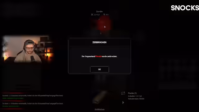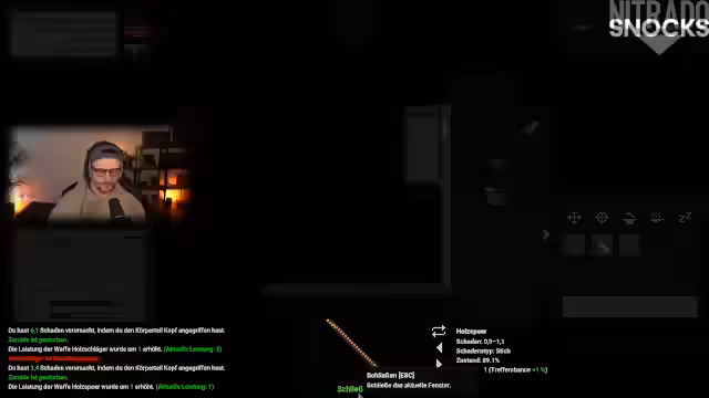 05:47:06Mit Einbruch der Nacht wird die Situation gefährlicher. Der Streamer gerät in einen Kampf mit einem Zombie, den er mit einem Messer tötet. Dabei wird seine Kleidung beschädigt. Er craftet einen behelfsmäßigen Verband und erlebt die erste Infektion. Er sucht Schutz in einem Haus, stellt fest, dass er darin nicht schlafen kann, und macht sich auf den Weg. Dabei findet er eine Bibliothek, in der er ein Buch liest, um seine Moral zu steigern, und erfährt von neuen Orten wie einer Kirche und einer Polizeistation.