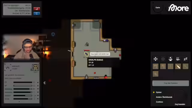 05:29:47Das Spiel Terminus wird ausführlich vorgestellt. Es handelt sich um ein rundenbasiertes Roguelike 2D-Survival-Spiel in einer Zombie-Apokalypse, das im August 2024 erschien und momentan im Angebot ist. Der Streamer beschreibt die Spielmechanik: Man startet in einem Haus, erkundet zufällig generierte Karten, sammelt Ressourcen, craftet Gegenstände und kämpft gegen Zombies. Jede Runde verbraucht Aktionspunkte (AP), und die Statistiken wie Lebenspunkte, Hunger und Hydration müssen gemanagt werden, um zu überleben.