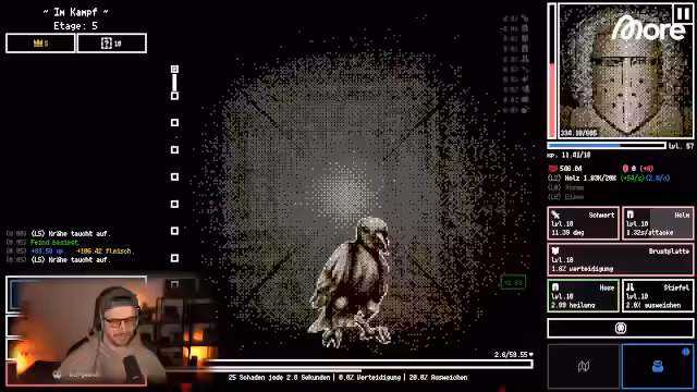 01:05:41Nachdem mehrere Ebenen des Verlieses erfolgreich absolviert wurden, steigt der Schwierigkeitsgrad. Neue Gegner wie Krähen mit hohen Ausweichchancen und mehr Leben stellen den Spieler vor Herausforderungen. Gleichzeitig können die Boni aus Demos in die Vollversion übertragen werden. Streamer erkundet nun höhere Ebenen, die als Albtraum-Räume gestaltet sind, und versucht, den Endboss zu besiegen, der eine lange Schlacht verlangt.