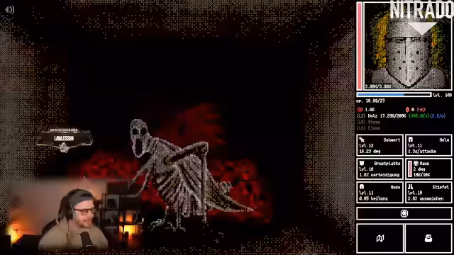 01:20:50Der Streamer erkundet eine Dungeon-Demo namens Horry Pylant. Er kämpft gegen einen Boss, dessen Angriffe automatisiert sind und findet eine Lampe. Durch die Verwendung der Lampe spürt er Kreaturen auf und findet ein Muster aus Symbolen. Nach einem erfolglosen Versuch, das Muster einzugeben, erkennt er, dass sein Begleiter geopfert wurde, was ihm Fleisch und Erfahrung bringt, aber auch Frustration bereitet.