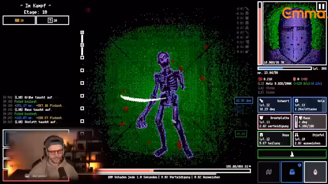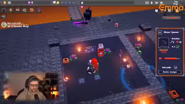 02:46:38Der Streamer startet mit dem Spiel Dungeon Tycoon, einem Dungeon-Builder, in dem man Monster und Fallen platziert, um Helden zu töten und Seelen zu sammeln. Er baut zunächst einfache Räume mit Monstern wie Orks und Wölfen, die für die Helden gefährlich sind. Die Strategie zielt darauf ab, die Helden in gefährlichen Zonen auszumanövrieren, sie zu töten, um Seelen zu erhalten, und mit diesen Ressourcen den Dungeon, die Monster und die Schreine zu verbessern.