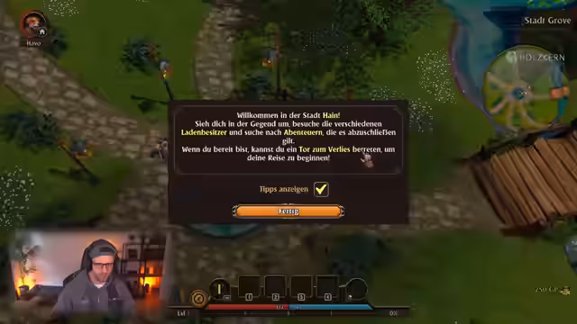 05:30:08Nach einer Unterbrechung startet der Streamer das Spiel "Fade", ein Remake des Klassikers von 2005. Er erstellt einen Charakter, beginnt in der Stadt Grove und nimmt die ersten Quests an. Dabei erkundet er die Dungeons, kämpft gegen verschiedene Monster wie Schleime und Goblins, sammelt Loot und interagiert mit NPCs. Das Spiel erzeugt starke Nostalgiegefühle und wird im Hinblick auf sein Gameplay und seine Atmosphäre bewertet.