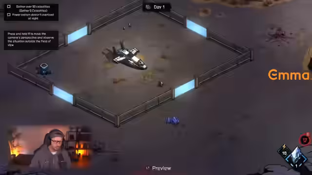 01:50:30Nachdem Blightstone vorgestellt wurde, wechselte der Stream zu der nächsten Demo, Desperate Place. Dabei handelte es sich um ein Tower-Defense-Spiel im Weltraum, bei dem es darum geht, ein gestrandetes Raumschiff gegen Wellen von Monstern zu verteidigen. Der Streamer baute anfangs einfache Türme und Mauern aus und generierte Ressourcen. Später wurden fortschrittlichere Verteidigungsanlagen wie Raketenwerfer und Plasma-Kanonen hinzugefügt. Der Soundtrack, inspiriert von StarCraft, wurde positiv hervorgehoben.