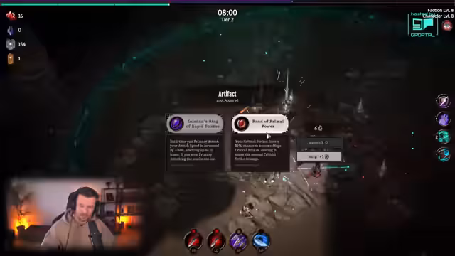 06:46:31Das Gameplay eines titellosen Spiels wird im Detail geschildert, wobei Mechaniken wie Lebenswiederherstellung durch Orbs, Wellensysteme, das Ritual-System bei bestimmten Zeitpunkten und die Rolle der Bewegungsgeschwindigkeit erläutert werden. Der Streamer kämpft gegen Elite-Gegner, sammelt Erfahrung und trifft strategische Entscheidungen, welche Fähigkeiten wie Angriffsradius oder kritische Treffer priorisiert werden, um die Runden zu überleben.