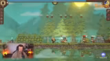 Während des Spiels werden die Mechaniken deutlich: Ressourcen werden abgebaut, Gegenstände im Inventar verwaltet und Bauten wie ein Campfire errichtet, der Energie und Konsumgüter produziert. Der Streamer testet verschiedene Upgrades und stellt fest, dass das Spiel eine ähnliche Progression wie Stardew Valley bietet, aber mit einem stärkeren Fokus auf automatisierte Prozesse nach dem Tagesabschluss. Die Spielwelt wächst durch das Freischalten neuer Orte wie Mountain, Jungle oder Volcano.
