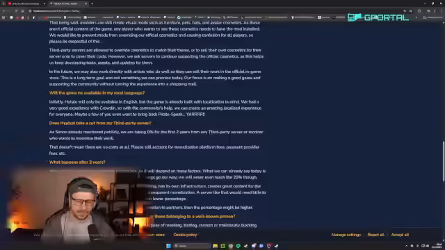 00:41:20Der Streamer hat ein Supporter-Pack für Hytale erworben und erklärt die Details: Das Spiel startet am 13. Januar als Early Access, nicht auf Steam, sondern direkt über die Website. Er zeigt die Paketinhalte wie Skins, Capes und Namensreservierungen. Riot Games wird als Investor genannt, was die Entwicklung stabilisiert. Der Streamer äußert Vorfreude auf das Minecraft-ähnliche Spiel und kritisiert frühere Gerüchte über die Einstellung der Entwicklung.