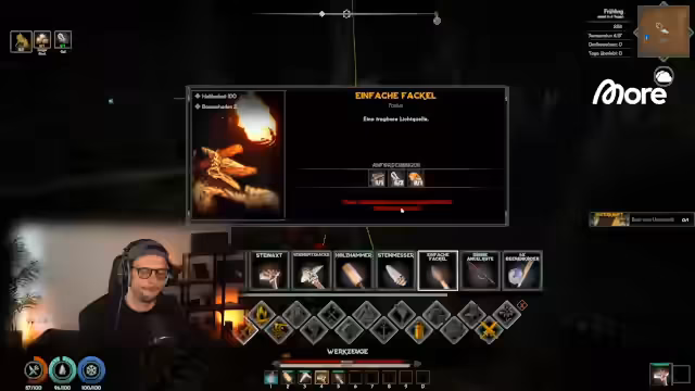 04:01:55Der Streamer beginnt mit dem Aufbau der ersten Siedlung in Aska. Nach dem Sameln von Fasern und dem Bau eines einfachen Lagerfeuers wird das Lager erweitert. Es werden die Mechaniken des Bauens und der Ressourcenverwaltung erklärt. Der Streamer stellt fest, dass das Spiel im Vergleich zu anderen Grind-Spielen wie Life is Feudal angenehmer ist. Es wird auch die Wahrnehmungsfunktion gezeigt, die das Finden von Ressourcen erleichtert. Der erste NPC der Siedlung wird bald erwartet, was das Spiel mehr in Richtung Siedlungsaufbau lenken wird.