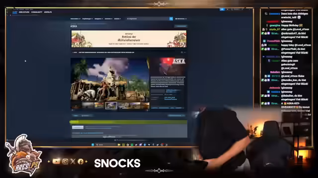 00:27:01Ein Steam-Guthaben-Giveaway läuft, wobei Followern mit einem Ausrufezeichen beigetreten werden können. Der Streamer plant, früher als geplant bei Asker einzusteigen und erwähnt, dass ihm für die Community Keys zur Verfügung gestellt wurden. Er stellt das Spiel Aska vor, das im Early Access ist und mit Wikinger-Thema und Bienenhaltung werben kann. Streamer betont die gute Entwicklung des Spiels und die Möglichkeit, sowohl solo als auch mit anderen zu spielen.