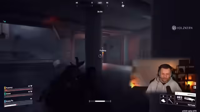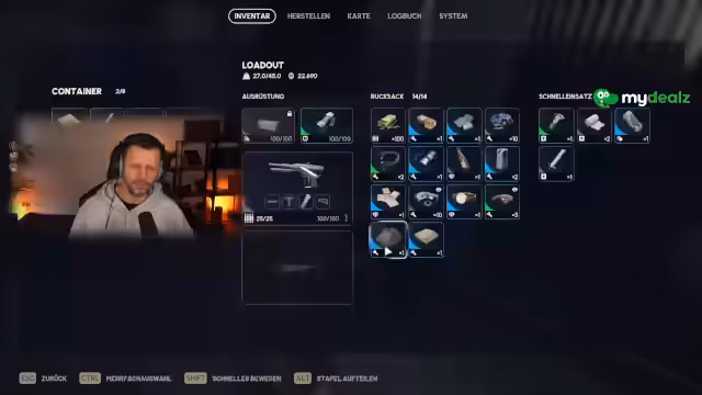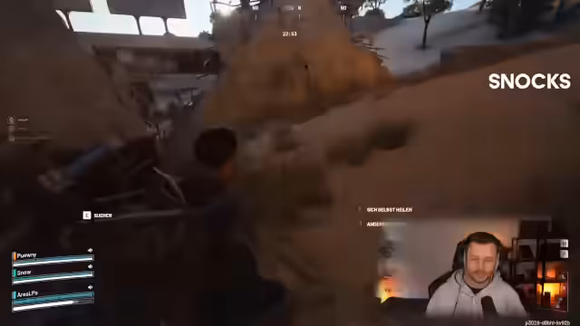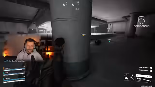 03:52:01Ein Spieler beeindruckt die anderen, indem er am Laptop mit Touchpad spielt und dabei eine bemerkenswerte Leistung zeigt. Dies führt zu einer Diskussion über die Schwierigkeit, mit einem Touchpad zu zielen, und die Notwendigkeit, die Mausempfindlichkeit entsprechend anzupassen. Die Spieler sind erstaunt über diese Fähigkeit, da sie selbst Schwierigkeiten hätten, ohne Maus zu spielen. Des Weiteren wird ein weiterer Glitch entdeckt, bei dem Spieler in Ecken von Räumen die Sicht durch verschlossene Türen verlieren können, was als unfair und 'kack' bezeichnet wird. Die Spieler beschließen, die aktuelle Runde zu beenden, ihre Taschen zu füllen und dann zu extrahieren, während sie die verschiedenen Waffen und deren Effektivität diskutieren, darunter die Stitcher, Farrow, Kettl und Anvil.