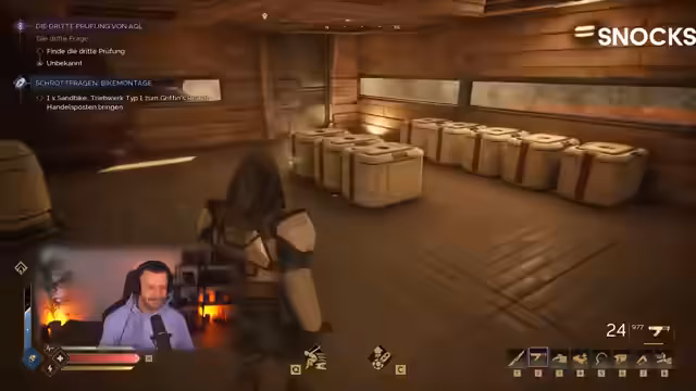 04:10:01Ein zentraler Aspekt des Streamings ist das detaillierte Bau- und Inventarsystem. Der Streamer sammelt Ressourcen wie Eisen, Wasser und Spice, um sein Sandbike zu verbessern und Basis-Infrastruktur wie Zisternen und Lagerplätze zu errichten. Er erklärt die Herstellung von Werkzeugen und Waffen, den Umgang mit dem Inventarlimit und die Unterschiede zwischen verschiedenen Materialien und deren Anwendung. Der Bau eines neuen, größeren Gefährts wird als Hauptziel verfolgt, wobei immer wieder benötigte Teile fehlen oder ersetzt werden müssen.
