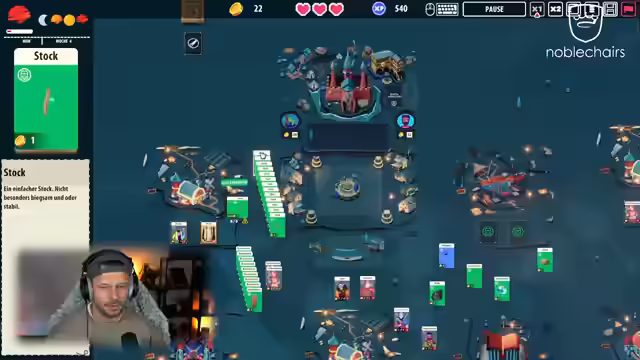 01:07:32Der Streamer startet das Gameplay von Kingdom of Cards und erklärt, dass das Spielbrett das Königreich darstellt. Er betont, dass das Kombinieren von Karten wichtig ist, um neue Gegenstände, Waffen und Werkzeuge herzustellen. Er baut ein Burgland, um ein Boosterpack zu erhalten, das einen Bauern und einen Wald enthält. Der Bauer wird im Wald eingesetzt, um Ressourcen wie Stöcke zu sammeln, die verkauft oder zum Craften verwendet werden können. Der Streamer baut einen Bauhof und ein weiteres Burgland. Er demonstriert, wie man Stöcke stacken und craften kann, um eine Sichel herzustellen, die als Waffe dient. Er experimentiert mit verschiedenen Kombinationen von Stöcken und Baumstämmen, um neue Gegenstände zu entdecken. Er baut eine Akademie, um eine Feldarbeiterin zu erhalten, die schneller Ressourcen sammelt. Der Streamer vergleicht das Spielprinzip mit Stacklands.