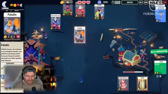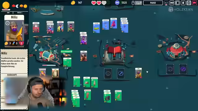01:19:01Der Streamer erkundet die Spielwelt, die stark an Stacklands erinnert, und sammelt Ressourcen wie Baumstämme, Stöcke und Stoffe. Es werden verschiedene Karten entdeckt, darunter Grünackersheim, das mit einem Soldaten erkundet wird, um Ressourcen zu verkaufen. Der Streamer kombiniert Ressourcen, um neue Gegenstände herzustellen, wie z.B. eine Angelrute aus einem langen Stock und einer Schnur. Es wird experimentiert, welche Kombinationen zu welchen Ergebnissen führen, z.B. die Kombination von Bauer und Angelrute zum Fischer. Der Fischer ist stark gegen Magie und kann Ressourcen aus dem Seeland sammeln. Der Streamer baut Flachhäuser und entdeckt Schlüssel für neue Gebiete. Es wird überlegt, wie man das Ackerland ausbauen kann und welche Einheiten für welche Aufgaben am besten geeignet sind. Der Streamer testet die Emma Kissen und spricht über die Möglichkeit, auch Emma Decken zu testen, wobei er auf die Option des Probeschlafens hinweist. Der Chat gibt Tipps zu Rabattcodes und Erfahrungen mit Emma Produkten.