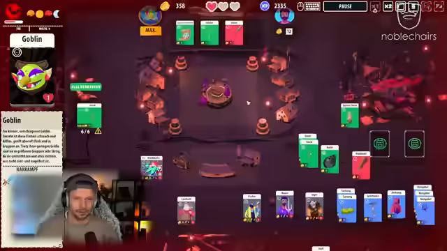 01:55:42Der Streamer erklärt die Spielmechaniken und betont die vielfältigen Elemente wie Erkundung, Crafting, Sammeln und Kämpfen. Er erklärt, dass das Spiel ein Roguelike-Element besitzt, bei dem man Fortschritte auch nach dem Tod behält. Der Streamer überlegt, den Endboss anzugreifen, entscheidet sich aber dagegen, da er sich noch zu schwach fühlt. Er erkundet Grünackerheim und erhält Spitzhacke und Stoff. Der Streamer erklärt das Spielprinzip und zeigt die verschiedenen Spielmodi. Er geht auf die Metaprogression ein und erklärt, dass man die Mine als Gebietskarte freischalten kann. Der Streamer greift den Boss an, wird aber besiegt. Er analysiert die Gründe für die Niederlage und plant eine neue Strategie. Der Streamer sortiert seine Ressourcen und Einheiten, um einen besseren Überblick zu erhalten. Er kombiniert Missgabeln und überlegt, welche Einheiten er verkaufen soll. Der Streamer erklärt, dass das Spiel relativ einfach ist, da man mit einer Basis beginnt und nach und nach Karten ranholen kann. Er erklärt das Crafting-System und gibt Beispiele für Kombinationen von Ressourcen.