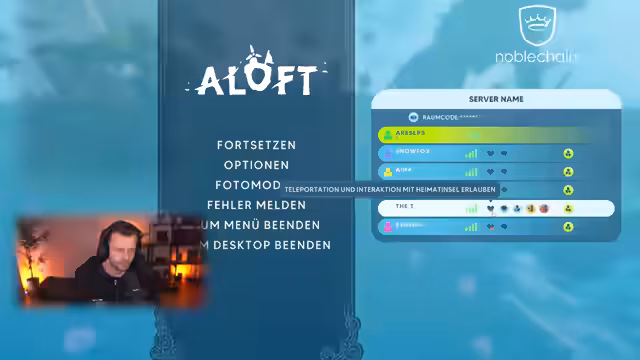 05:36:47Der Streamer kündigt an, einen Aloft-Server für seine Community bei G-Portal zu mieten, nachdem er feststellt, dass er selbst aufgrund anderer Spiele wie V-Rising und Palworld nicht aktiv spielen würde. Er plant, den Server für einen Monat für bis zu acht Spieler einzurichten, um das gemeinsame Erkunden, Bauen und Fliegen zu ermöglichen. Nachdem er die Servereinstellungen wie den Kartennamen 'Asai Community Server', die Anzahl der Inseln und den Spielerlimit festgelegt hat, wird der Server aktiviert. Der Zugang erfolgt über eine Lobby-Liste, da die Freundescodes vorerst nicht funktionieren.