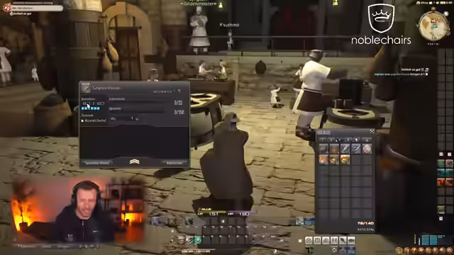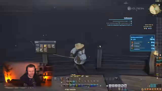 01:44:38Um ca. 6278 Sekunden ist der Streamer im Gourmet-Beruf auf Stufe 9 und stellt fest, dass er bald eine neue Quest annimmt. Neben der Beschäftigung mit Berufen zeigt er auch das Begleiter-System. Er erkundet das Begleiterverzeichnis, erhält verschiedene Begleiter, darunter ein Schiff, und nutzt diese mit Emotes wie Sitzen. Trotz des Interesses an den Berufen und Begleitern gibt er an, dass die Zeit vergeht und er zu Aloft wechseln möchte, was die baldige Beendigung des Final Fantasy XIV-Abschnitts ankündigt.