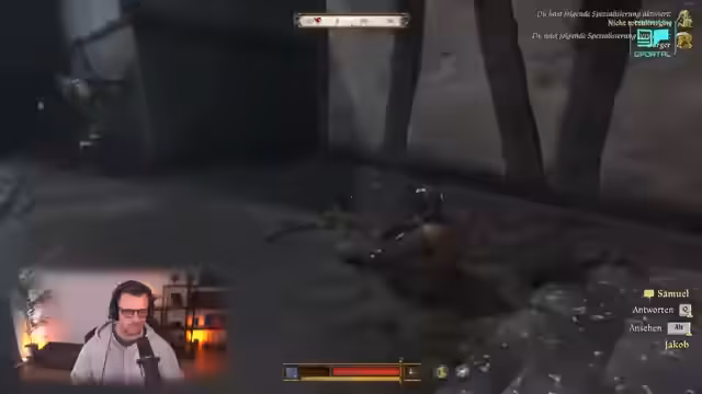 01:56:59Der Streamer schmiedet einen Rekunaris-Säbel in Vierer-Qualität. Er ist begeistert vom Ergebnis und der Optik des Säbels, insbesondere von den Verzierungen in der Klinge. Anschließend absolviert der Streamer ein Kampftraining mit Kurzschwert und Schild. Er übt verschiedene Kombos und Techniken gegen einen Trainingspartner. Dabei werden die Vorzüge des Maishafen-Schlags hervorgehoben und der Streamer versucht, seinen Gegner zu entwaffnen. Nach dem erfolgreichen Training möchte der Streamer weitere Kampftechniken erlernen und entscheidet sich für den Zerschmetternden Hieb und den Tschechischen Beifall. Er übt die neuen Techniken und kombiniert sie mit seinen bisherigen Fähigkeiten. Abschließend plant der Streamer, die neue Klinge bei einem Überfall in der Nähe zu nutzen und die erlernten Techniken anzuwenden. Dabei kommt es zu einem unbeabsichtigten Tod einer Bewohnerin, was den Streamer überrascht.