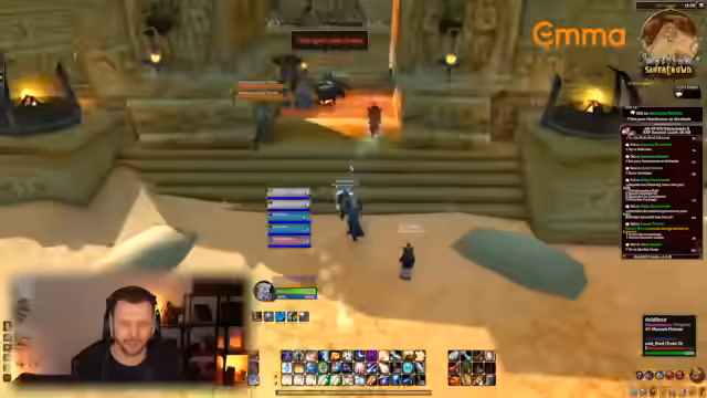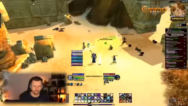 00:10:48Der Stream beginnt mit der unglücklichen Nachricht, dass mehrere Spieler auf dem Server gestorben sind, darunter Holla und Prestazis, beide auf Level 60. Hollas Tod ist besonders dramatisch, da sie versehentlich einen fehlerhaften Makro verwendete, der ihr erlaubt hätte, Ruhestein und Elunes Licht zu kombinieren. Stattdessen wurde der Heal abgebrochen und sie starb. Gleichzeitig gibt es technische Probleme mit der Maus und dem Interface, die auf ein Problem mit dem Overlay hindeuten.