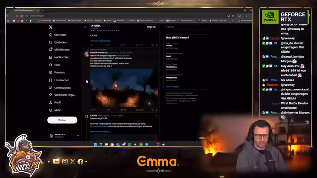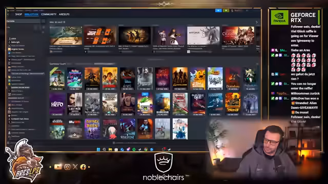 00:08:16Zu Beginn des Streams wurde die Spielbibliothek bereinigt, um nur die aktuell gespielten Titel zu behalten. Der Streamer begrüßte zahlreiche Chatter im Chat wie Herr Flauschi, Warner, Werner und TK Knips, wobei es zu einer humorvollen Aussprache-Diskussion um den Namen 'Flauschi' kam. Die Stimmung im Chat war freundlich und rege, mit persönlichen Grüßen und Wiedererkennung von Followern.