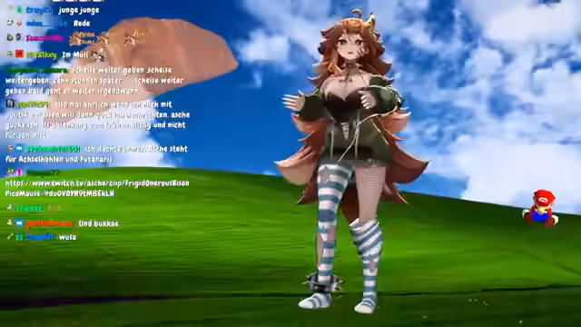 01:32:33Der Stream entwickelt sich in Richtung absurder und unkonventioneller Inhalte. Um den Verlust des Trackings zu kompensieren, inszeniert die Streamerin humorvolle Szenen, darunter eine explizite Erzählung über eine Toiletten-PNG mit provokanten Kommentaren. Dies führt zu technischen Problemen, bei denen der Tracker ausfällt und der Avatar in seltsame Posen gerät. Der Abschnitt ist geprägt von schnellen Themenwechseln und skurrilen Aktionen wie dem 'Klo-Stein-Sketch' und humorvollen Reaktionen auf die eigenen, technisch bedingten Fehler.