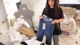 03:03:00Im Stream wird bestellte Kleidung vorgeführt und ausprobiert. Die Streamerin probiert verschiedene Oberteile, Röcke und Hosen an, die aus Online-Shops stammen. Die Meinungen über die Kleidungsstücke sind gemischt; einige werden als 'geiztrankt' oder unpassend empfunden, andere als 'bomb'. Nebenbei wird das Chaos im Zimmer thematisiert.