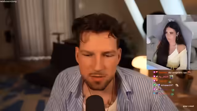 01:15:11Der Streamer reagiert auf ein First-Date-Video, in dem sich Lena und Adrian gegenüberstehen. Die beiden haben Probleme, eine Verbindung herzustellen. Lena beschreibt sich als sympathisch und sucht einen normalen, sportlichen Mann, keinen Fitness-Bully. Adrian ist Fotograf, wirkt auf sie jedoch äußerlich nicht wie ihr Typ. Während des Gesprächs merkt Lena, dass Adrian nicht auf sie blickt, was die Spannung senkt. Die Situation eskaliert jedoch beim Thema Bezahlen, wo Adrian nicht selbstverständlich die Rechnung übernimmt, was Lena in eine unangenehme Situation versetzt und den romantic spark für sie sofort zum Erliegen bringt.