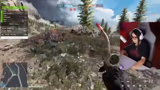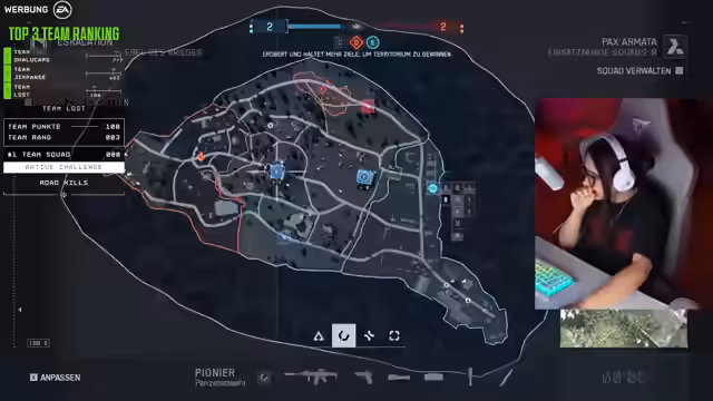 00:20:57Das Team beginnt mit der 'Waffenroulette'-Challenge, wobei die Streamerin mit Jetlag kämpft und ihre Fähigkeiten als eher beschrieben wird. Nachdem das Team erfolgreich verschiedene Kills erzielt hat, wechselt es zu anderen Herausforderungen wie 'Pionier', bei dem fünf Panzer zerstört werden müssen. Die Streamerin beschreibt das Gameplay als stressig und aufreibend, besonders bei den 'Roadkills'. Sie zeigt sich begeistert von der neuen Map und dem Gameplay, obwohl ihr Zustand die Performance beeinträchtigt. Das Team arbeitet eng zusammen, um die Challenges rechtzeitig abzuschließen.