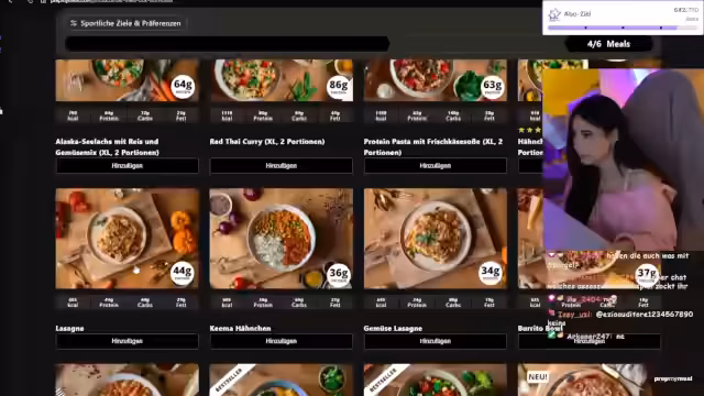 05:28:05Die Streamerin geht detailliert auf die Karte von Prep My Meal ein und listet verschiedene Gerichte auf, darunter Hähnchen mit Süßkartoffeln, orientalisches Hähnchen, Lasagne und ein Rumsteak-Gericht. Auch vegane Optionen, wie Pilzrahmsauce und andere rein pflanzliche Gerichte, werden entdeckt. Sie überlegt, was sie noch probieren könnte, und erwägt ein Gericht mit Lachs oder eine Pizza. Zudem erwähnt sie, dass es verschiedene Paketgrößen gibt und verweist auf ein Panel mit einem Rabattcode.