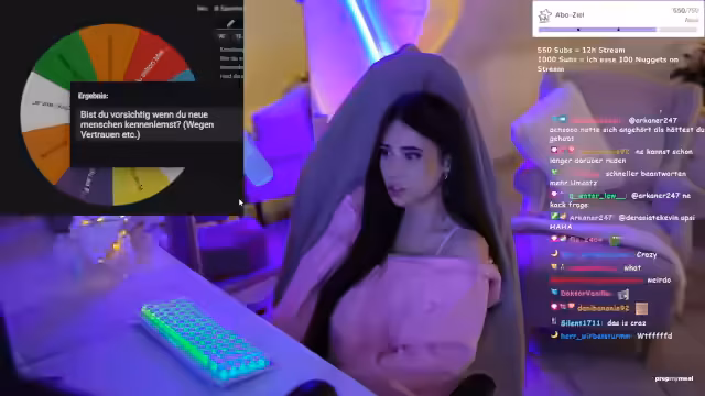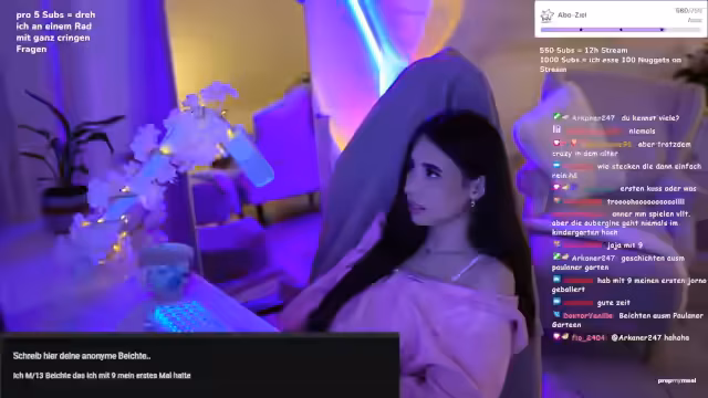 00:19:30In sehr persönlichen Antworten erzählt die Streamerin von ihrer Erfahrung mit Dating-Apps. Sie beschreibt einen Vorfall vor rund zweieinhalb Jahren, bei dem sie mit ihren Freundinnen Tinder ausprobierte und den Kontakt zu einem jungen Mann aufnahm, der aber zu jung für sie war. Sie berichtet auch traumatische Erlebnisse mit einem Stalker, der gefälschte Chatverläufe erstellte und sie in ihrem Umfeld diskreditierte. Dieses Erlebnis hat sie so verunsichert, dass sie sehr misstrauisch gegenüber neuen Kontakten geworden ist und Angst vor Screenshots hat.