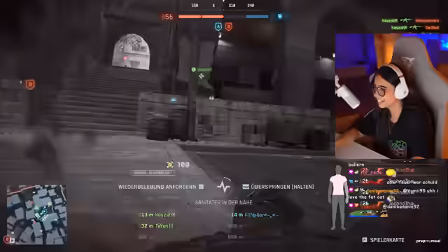 03:47:42Ein Giveaway mit anonymen Subs und Bits wird erwähnt, wobei der Streamer die Großzügigkeit der Community hervorhebt. Es folgen weitere Kämpfe, in denen der Panzer erneut dominiert und das Team als unorganisiert kritisiert wird. Technische Schwierigkeiten mit der Waffenausrüstung, wie fehlende Aufsätze oder ungewollte Rückstellungen, werden beklagt. Zusätzlich wird eine kurze, nicht relevante Anekdote über Wohnungsvermietung eingeworfen, die jedoch schnell wieder verlassen wird, um auf das Spielgeschehen zurückzukommen.
