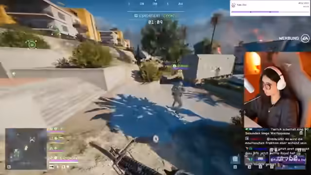 01:20:55Der Stream startet inmitten eines intensiven Gefechts in einem Battle-Royale-Spiel. Die Spieler koordinieren ihre Positionen im Panzer, um feindliche Ziele anzugreifen. Es kommt zu Verwirrung über den Standort der Gegner, und Artilleriefeuer setzt ein. Spieler diskutieren über die Taktik, die Vorteile von erhöhtem Gelände und besprechen die Ausrüstung, wie Plaketten und Munition. Ein plötzlicher Angriff eines feindlichen Squads von hinten zwingt die Spieler, schnell zu reagieren und ihre Position zu wechseln.