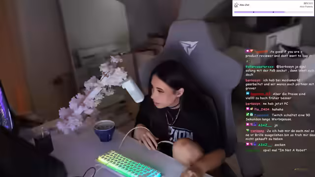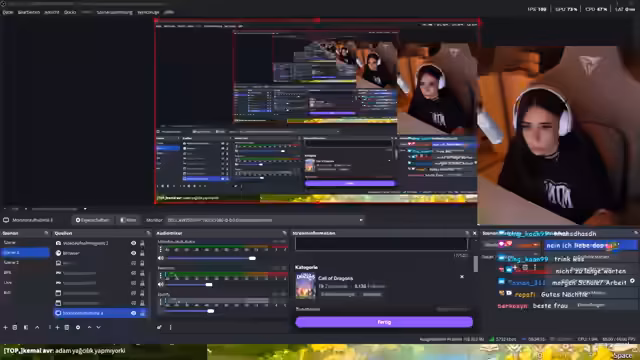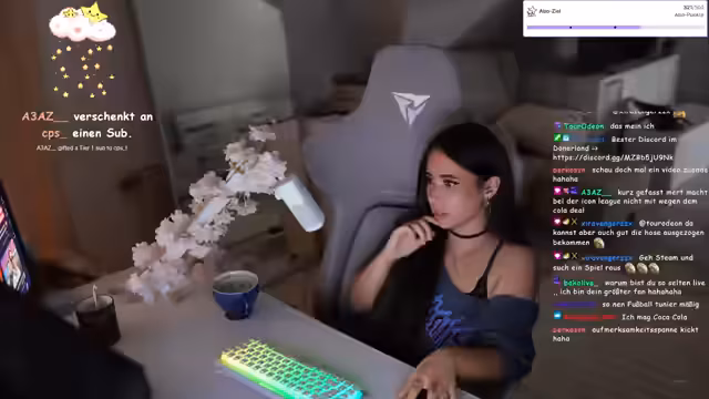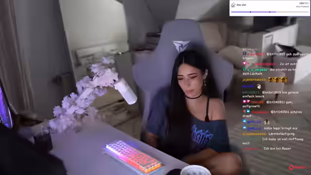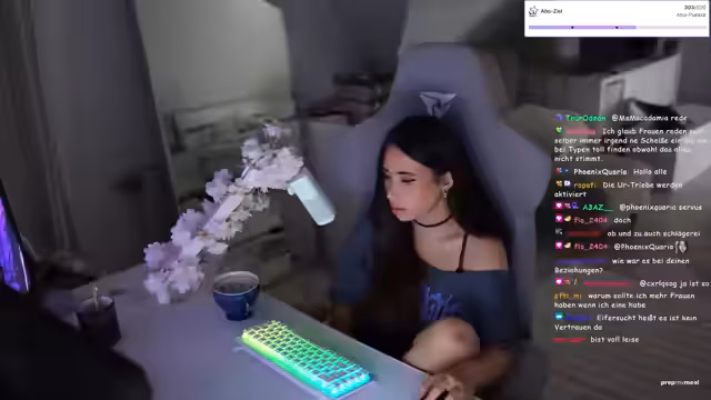 02:04:58Ein männlicher Gast im Stream, der offenbar der Verlobter der Schwester der Streamerin ist, stellt sich vor. Die Streamerin ist erstaunt, da er „gewohnt“ und „ungewohnt“ zugleich ist. Der Besuch entwickelt sich zu einem privaten Moment, da die Streamerin ihren Gast in ihrem Streaming-Zimmer begrüßt und ihm erlaubt, Platz zu nehmen. Dabei interagiert sie live mit den Chat-Mitgliedern, die den Gast sehen können, und diskutiert über dessen Aussehen. Es ist eine ungewöhnliche und zugleich persönliche Situation, da der Gast das erste Mal im Stream zu sehen ist und die Chat-Community ihn direkt kommentiert.