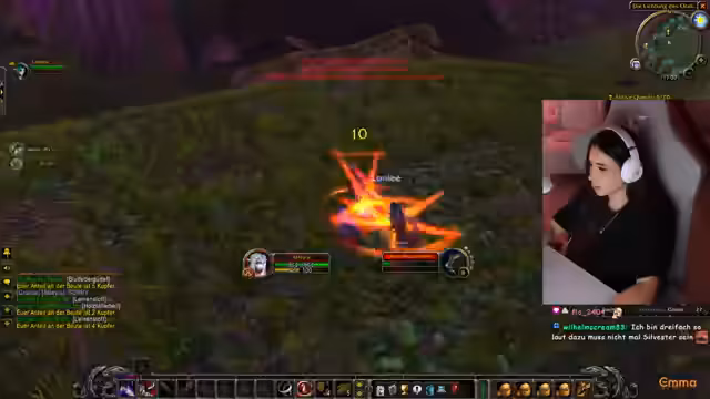 02:09:58Der Streamer spielt World of Warcraft und diskutiert mit dem Chat über Charakterwahl und Strategien. Nachdem er sich gegen einen Priester (Mana-Probleme) und für einen Schurken entschied, wird er von einem Level-60-Heiler namens Han durchgetragen. Es folgen Diskussionen über Addons (Leatrix Plus erlaubt, Rested XP verboten), Volksfähigkeiten und Server-Regeln. Der Streamer plant nach dem Weihnachts-Event Retail WoW mit einem Nachtelf-Jäger zu spielen, inspiriert von einem TikTok-Charakterdesign.