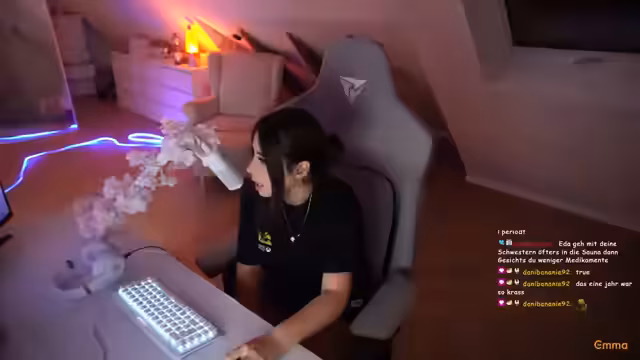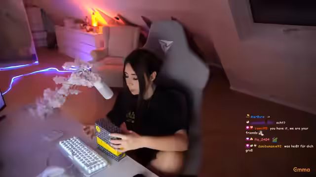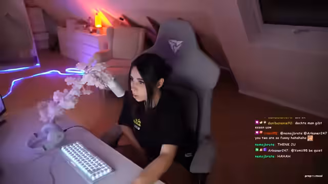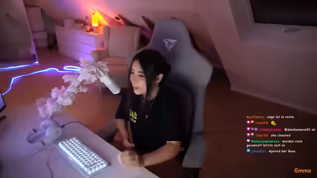 03:26:44Ein schwerer Wutausbruch während eines Streams ereignete sich, als Monte sie in einem kritischen Spielmoment ablenkte und sie einen Rang verlor – sie warf aus Frustration einen Wäschester durch die Bude. Später reflektierte sie, dass solche Zerstörungen kostspieliger Geräte (z.B. 200€ Controller) unverantwortlich sind, da andere Menschen hart dafür arbeiten. Sie entwickelte Bewusstsein für Kontrolle und nutzt stattdessen harmlose Methoden wie Kissenwürfe, um Ärger abzubauen.
