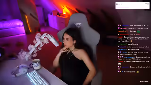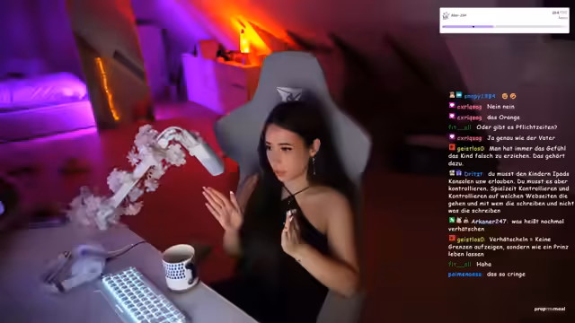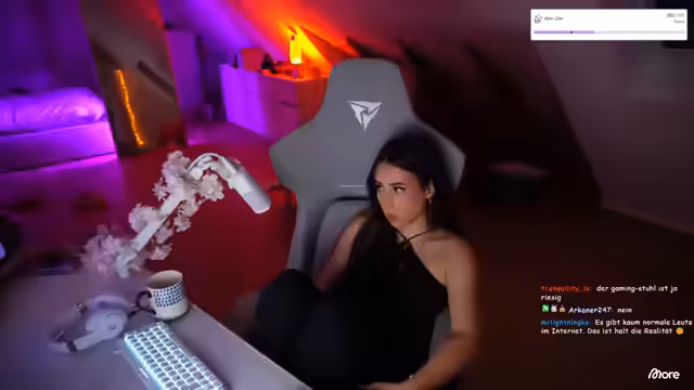 00:01:01Die Streamerin begrüßt ihre Zuschauer und gibt zu, vergessen zu haben, ihr Mikrofon lauter zu stellen. Sie erwähnt die anwesende Chat-Community und verspricht, eine Menge zu erzählen, da in der letzten Zeit viel passiert ist. Ein vorgeschlagener Thema ist, ob sie ihre Nägel im Stream machen soll, wobei sie anmerkt, dass diese im Stream im Vergleich zum Alltag lang wirken. Sie wird schließlich doch weiterhin Namen nennen, trotz eines Hinweises von ihrer Freundin.