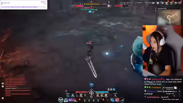 01:32:24Der Stream beginnt mit den ersten Eindrücken des Spiels Aion, das auf taiwanesischen Servern gespielt wird, da es international noch nicht verfügbar ist. Die Streamerin zeigt sich begeistert von der Charaktererstellung, insbesondere vom Aussehen ihres Charakters, äußert jedoch Bedenken bezüglich der seltsamen Laufanimation und des hervorstehenden Pos. Sie kämpft mit der Steuerung und den Spielmechaniken, insbesondere dem Schießen und Rennen, und überlegt, ob ein Tutorial doch notwendig gewesen wäre. Trotz anfänglicher Schwierigkeiten lobt sie das flüssige Gefühl der Skills und das Design der großen Waffen. Sie betont, dass sie das Spiel ernsthaft spielt und auf der Suche nach freizügigeren Skins ist, da sie nicht zum Spaß spielt. Die musikalische Untermalung wird kurz thematisiert, wobei die Streamerin überlegt, ob die Spielmusik zu laut ist oder ob die taiwanesische Sprachausgabe deaktiviert werden sollte.