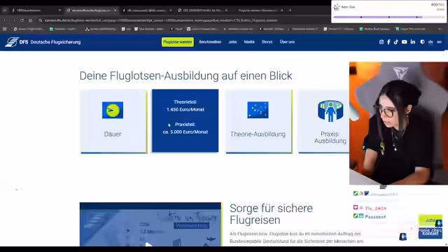 02:07:29Die Streamerin präsentiert ein Placement mit der Deutschen Flugsicherung und bewirbt Ausbildungsplätze zum Fluglotsen. Sie erwähnt, dass bereits zwei Interviews mit Fluglotsen stattgefunden haben, die sehr aufschlussreich waren und die guten Verdienstmöglichkeiten sowie die anspruchsvolle Natur des Berufs hervorhoben. Eine wichtige Anforderung sei sehr gutes Englisch, da Fluglotsen international mit Piloten kommunizieren. Die Ausbildung sei anspruchsvoll, biete aber auch viele Pausen und die Arbeit im Team. Besonders hervorgehoben wird eine Challenge für Abiturienten, bei der Schulklassen ein kreatives Erklärvideo über den Beruf des Fluglotsen erstellen können, um bis zu 10.000 Euro für die Abikasse zu gewinnen. Die Teilnahmefrist ist der 15. Dezember, und die Streamerin ermutigt ihre Zuschauer, diese Chance zu nutzen.