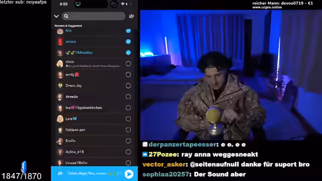 02:49:45Ein zentraler Bestandteil des Streams ist die Vorstellung mehrerer Teilnehmer aus dem Zuschauer-Call. Der Teilnehmer Badia stellt sein aufwendiges Setup mit mehreren Kameras, einem Stream Deck und verschiedenen Mikrofonen vor, das er sich über Jahre und mit viel Geld aufgebaut hat. Raschk, ein 22-jähriger Auszubildender bei VW, berichtet von seiner Arbeit mit 3D-Druck und der damit verbundenen Kostenstruktur. Weitere Teilnehmer wie Mohamed (13), Aaron (17) und Mohamed (22) stellen sich vor und geben Einblicke in ihre Lebensumstände und Beziehungen.