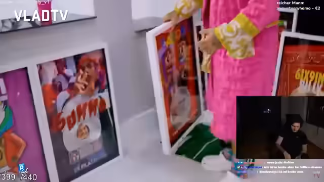 06:12:05Im Rahmen eines speziellen Contents für 18.000 Abonnenten zeigt der Streamer eine Roomtour seines Zimmers, das er sein 'Zockerparadies' nennt. Er führt durch den gesamten Raum, von der Treppe bis zum Bett, und stellt seine Gaming-Ausrüstung, Poster, LED-Beleuchtungen, Sammlerstücke und den persönlichen Lifestyle vor. Er beschreibt die Details seiner Einrichtung, darunter einen großen Fernseher, zwei Monitore, eine PlayStation und eine Vielzahl von Gaming- und Merchandise-Artikeln. Besonderen Wert legt er auf die Atmosphäre des Zimmers, wenn die Lichter aus sind und die Neon-Elemente leuchten.