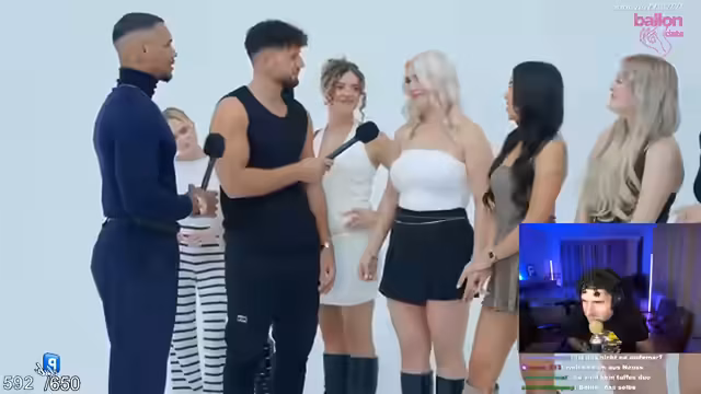 01:21:28Der Streamer schaut sich eine Folge der Dating-Show 'Pop the Balloon' an und kommentiert die Kandidaten. Er macht sich über das Format, die Kritierien der Bewerber und die T-Shirts der Männer lustig, insbesondere ein T-Shirt mit dem Schriftzug 'Sabr', das er für einen In-Joke hält. Er bewertet die Attraktivität und die Persönlichkeiten der Teilnehmer, wobei er sich oft auf oberflächliche Merkmale wie Style, Tattoos und Körpergröße konzentriert. Er zeigt sich amüsiert von den Interaktionen und den Entscheidungen der Kandidaten.