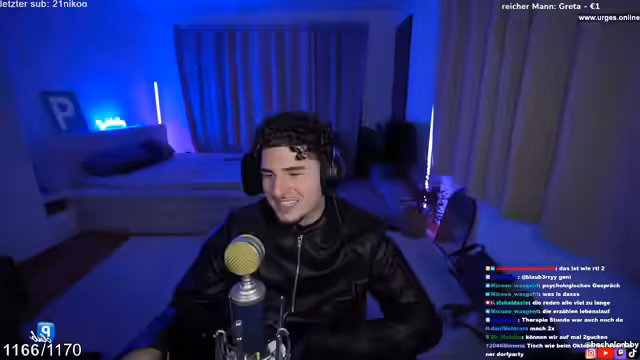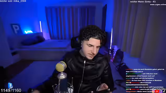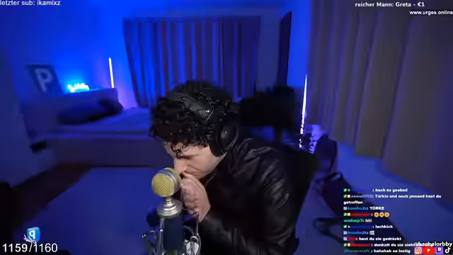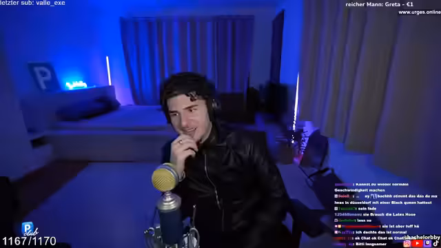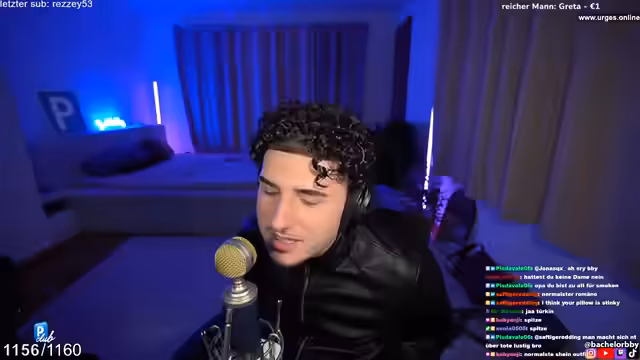 00:56:14Im weiteren Verlauf des Streams wenden sich die Themen alltäglichen Dingen zu. Ein Zuschauer fragt nach der Passform seiner 'Urges'-Joggers, der Streamer gibt an, Größe M bei 1,80m Körpergröße zu tragen, was nicht eng ist. Die Stimmung verschiebt sich zu humoristischen, aber seltsamen Aufforderungen im Chat: eine Frau fordert ihn auf, seinen Bauch zu zeigen. Dies führt zu Diskussionen über seine Figur, wo Zuschauer ihn wegen eventueller 'Speckfalten' verspotten. Der Streamer fragt sichtlich verwundert und nicht einverstanden, warum sich überhaupt jemand für seinen Bauch interessieren sollte, und gibt zu, viel Gewicht zugenommen zu haben.