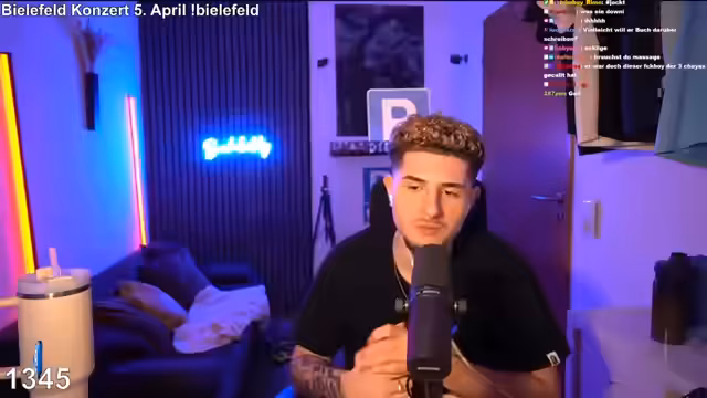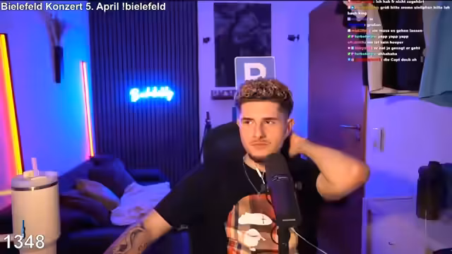 00:01:50Der Stream beginnt mit dem Moderator, der seit drei Tagen krank ist und seine YouTube-Views erwähnt. Er interagiert mit dem Chat, stellt Lichtverhältnisse in Frage und lässt sich von Zuschauern Tickets für die bevorstehende Bielefeld-Veranstaltung schicken. Es wird ein Discord Call für später angekündigt. Der Titel des Streams, 'Letzte Nachricht an EX', wird erwähnt und als frische Idee präsentiert. Der Streamer teilt mit, dass er 120 Euro Miete zahlt und einem Zuschauer verrät, dass er selbst seine Videos schneidet.