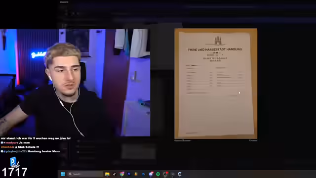01:14:22Nachdem er sich die Zeugnisse der Zuschauer angesehen hat, zeigt der Streamer sein eigenes Abiturzeugnis. Seine Noten sind Durchschnitt, mit einigen Fünfern, was ihm selbst zu schaffen macht. Offenbar erinnert ihn die Betrachtung der Zeugnisse an seine eigene Schulzeit und die damit verbundenen Schwierigkeiten und Enttäuschungen.