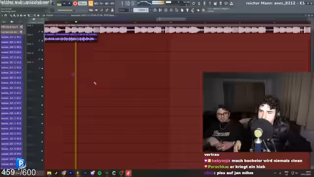 01:58:28Der Streamer und Emil arbeiten intensiv an einem Song, wobei Emil seine kreativen Ideen einbringt und der Streamer ihn ermutigt, sich künstlerisch frei zu entfalten. Es wird über verschiedene Zeilen und deren Wirkung diskutiert, wie zum Beispiel die Zeile „Ja, mein Kollege sagt am Tipp, er sagt so gut, man denkt, der ist ne Bitch“. Die Zusammenarbeit ist geprägt von humorvollen Vorschlägen und dem ständigen Bestreben, den Text zu optimieren und die gewünschte Atmosphäre zu erzeugen. Die Diskussionen drehen sich auch um die Lautstärke und den Ausdruck der Vocals, um die bestmögliche Performance zu erzielen. Es zeigt sich eine dynamische Interaktion, bei der beide Künstler versuchen, das Beste aus dem Song herauszuholen und dabei auch auf die Reaktionen des Chats eingehen.