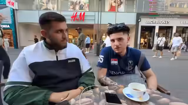 01:40:07Der Begleiter offenbart seine persönliche Fluchtgeschichte aus Syrien im Jahr 2013. Er schildert die gefahrvolle Überfahrt mit einem Schlauchboot nach Libanon und die anschließende Weiterreise nach Deutschland. Der Streamer unterbricht diese ernste Geschichte jedoch, indem er den Kameramann als 'Syriener' und 'Dieb' bezeichnet und die Atmosphäre wieder auflockert, was zu einem zwischenmenschlichen Streit führt.
